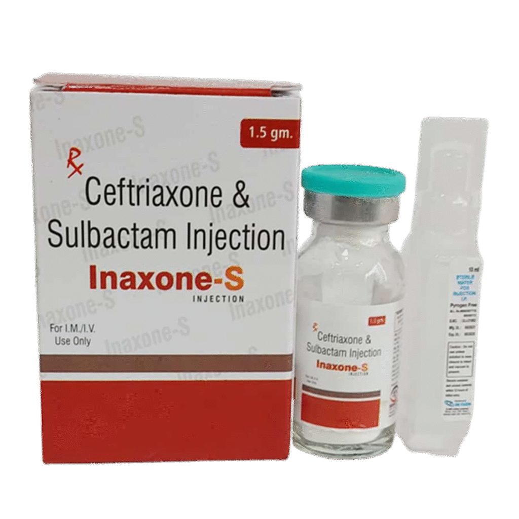 Inaxone-S is a powerful combination of Ceftriaxone and Sulbactam, offering enhanced broad-spectrum antibacterial action. Effective against resistant infections in the respiratory tract, urinary tract, abdomen, skin, and more.